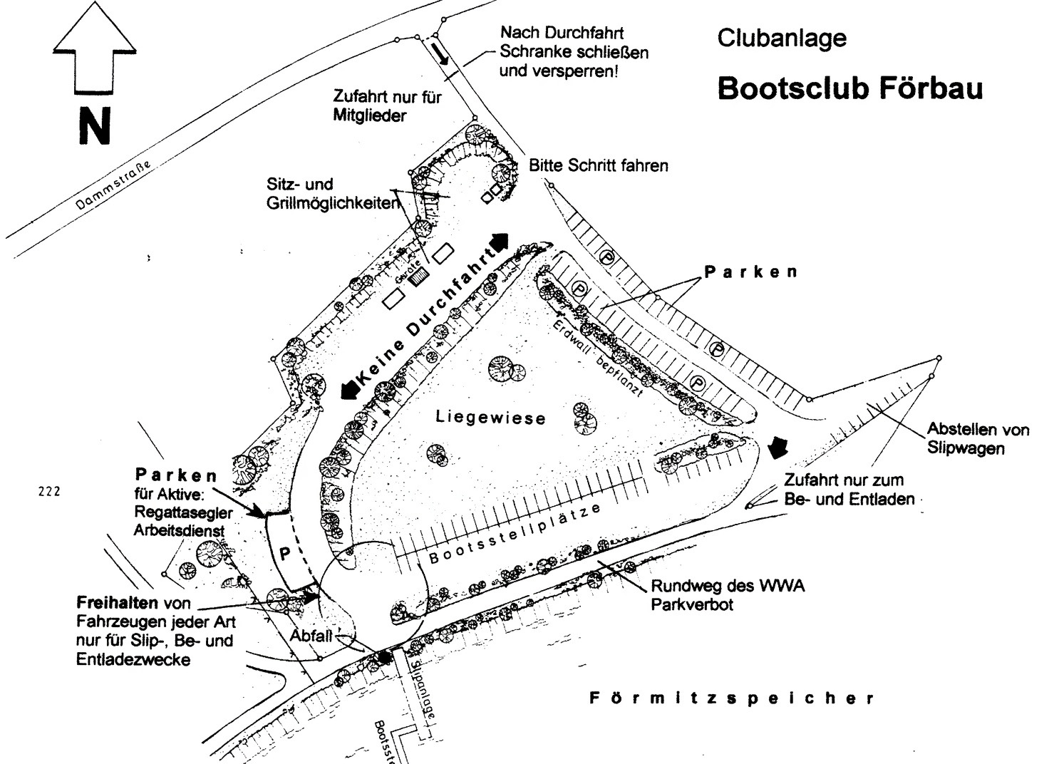 Wir haben ein sehr schönes Gelände mit altem Baumbestand und Wiesenflächen sowie den zugehörigen Flächen für den Bootsbetrieb.